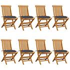 vidaXL 3072932 Sæt med 8 havestole massivt teak lysegrå hynder