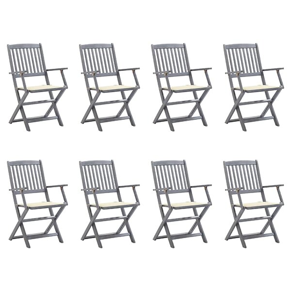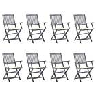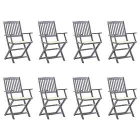 vidaXL Foldbare havestole 8 stk Massivt akacietræ med hynder 3078264