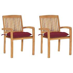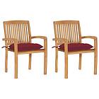 vidaXL Trädgårdsstolar 2 st med vinröda dynor massiv teak 3063276