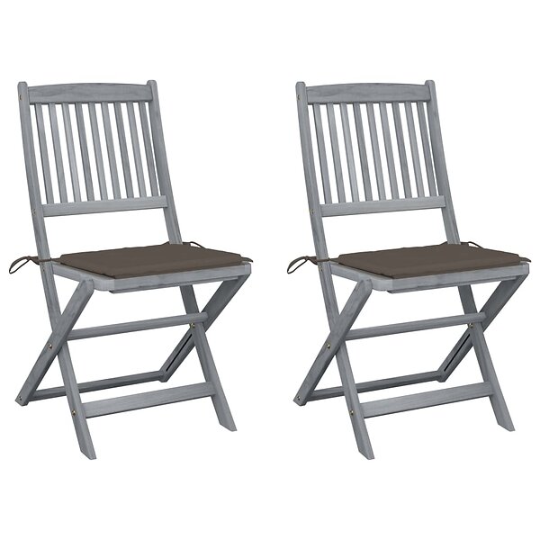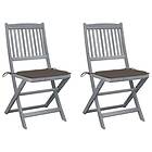 vidaXL Hopfällbara trädgårdsstolar med dynor 2 st massivt akaciaträ 3064544