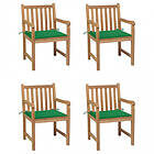 vidaXL Trädgårdsstolar med gröna dynor 4 st massiv teak 3073009