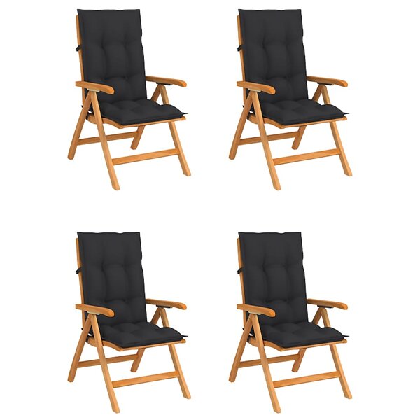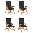 vidaXL Justerbara trädgårdsstolar med dyna 4 st massiv teak 3072645