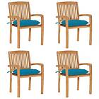 vidaXL Stapelbara trädgårdsstolar med dynor 4 st massiv teak 3073259