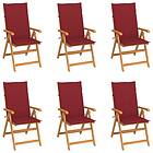 vidaXL Trädgårdsstolar 6 st med vinröda dynor massiv teak 3065569
