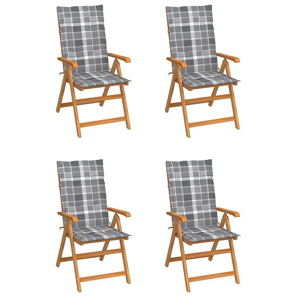 vidaXL Havestole med hynder Grå 4 stk Massivt teaktræ 3065544