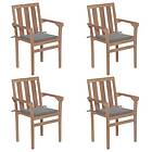 vidaXL Stapelbara trädgårdsstolar med dynor 4 st massiv teak 3073380