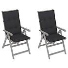 vidaXL Justerbara trädgårdsstolar med dynor 2 st massivt akaciaträ 3064713