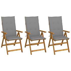 vidaXL Foldbare havestole med hynder Sæt med 3 Massivt akacietræ 3064090