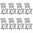 vidaXL Foldbare havestole 8 stk med hynder massivt akacietræ 3078307