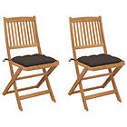 vidaXL Hopfällbara trädgårdsstolar med dynor 2 st massivt akaciaträ 3064667