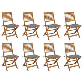 vidaXL foldbare havestole 8 stk. med hynder massivt akacietræ
