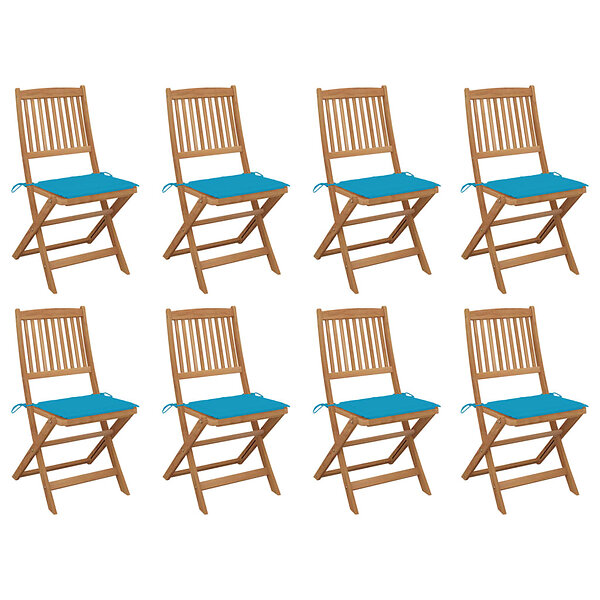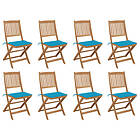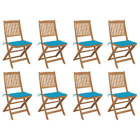 vidaXL Hopfällbara trädgårdsstolar med dynor 8 st massivt akaciaträ 3075117