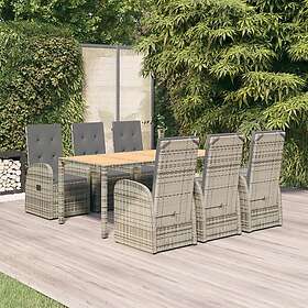 vidaXL Matgrupp för trädgården med dynor 7 delar grå konstrotting 3157588