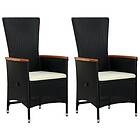 vidaXL Have Lænestole 2 stk med hynder Faux Rattan Sort 47675