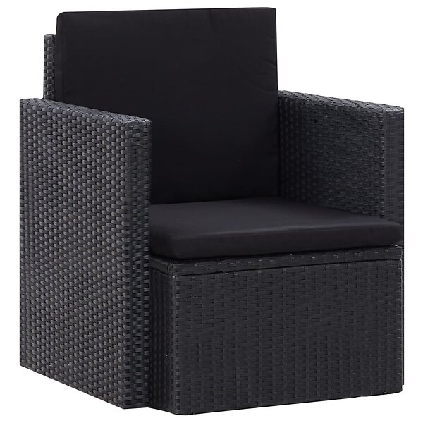 vidaXL Trädgårdsfåtölj med dynor konstrotting svart 45782