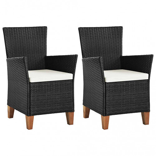 vidaXL Trädgårdsfåtöljer 2 st med dynor konstrotting svart 44103