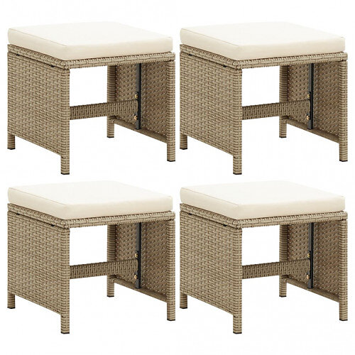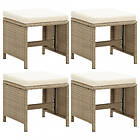 vidaXL Trädgårdspallar 4 st med dynor konstrotting beige 316779