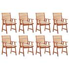 vidaXL Trädgårdsstolar 8 st med dynor massivt akaciaträ 3078377