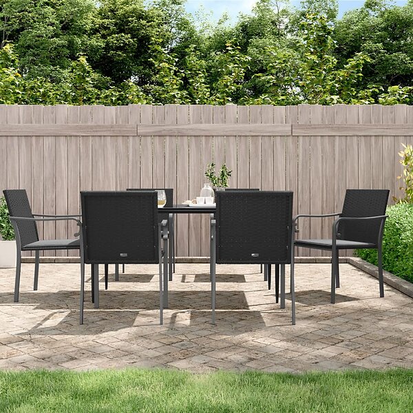 vidaXL Trädgårdsstolar 6 st med dynor svart 56x59x84 cm konstrotting 3187076