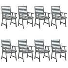 vidaXL Trädgårdsstolar med dynor 8 st massivt akaciaträ 3078445