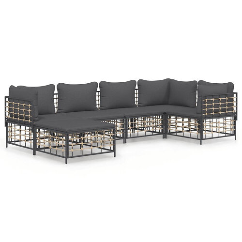 vidaXL Loungegrupp 6 delar med dynor antracit konstrotting 3186771