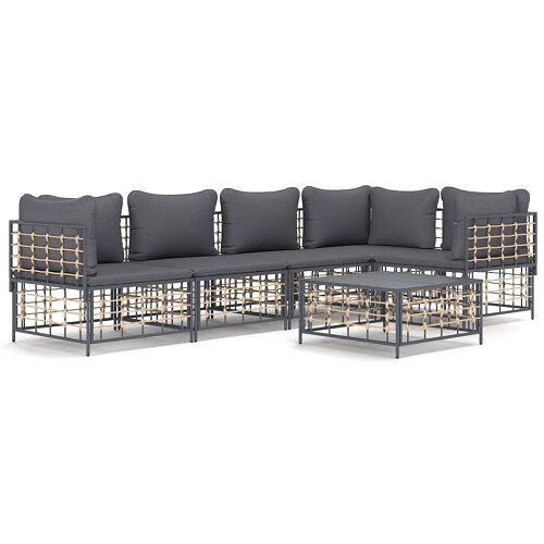 vidaXL Loungegrupp 6 delar med dynor antracit konstrotting 3186753