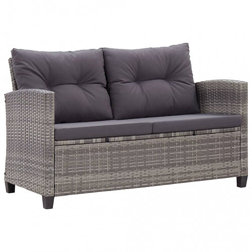 vidaXL Have sofa 2-personers med hynder grå rattan 124 cm 46154