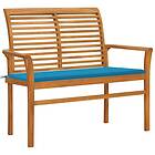 vidaXL Trädgårdsbench med blå dyna 112 cm massiv teak 3062653
