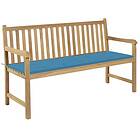 vidaXL Trädgårdsbench med blå dyna 150 cm massiv teak 3062707