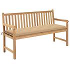 vidaXL Trädgårdsbench med beige dyna 150 cm massiv teak 3062721