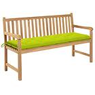 vidaXL Trädgårdsbench med ljusgrön dyna 150 cm massiv teak 3062729