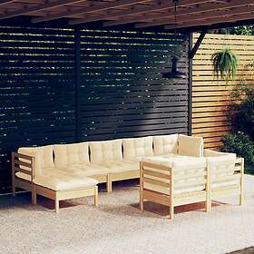 vidaXL Loungegrupp med gräddvita dynor 9 delar massiv furu 3097127