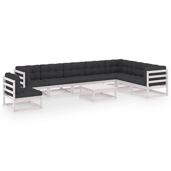 vidaXL Loungegrupp med dynor 9 delar vit massiv furu 3076830