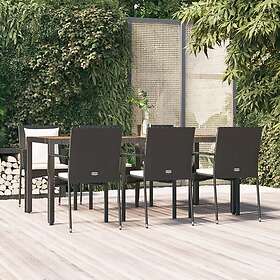 vidaXL Matgrupp för trädgården med dynor 7 delar svart konstrotting 3157967