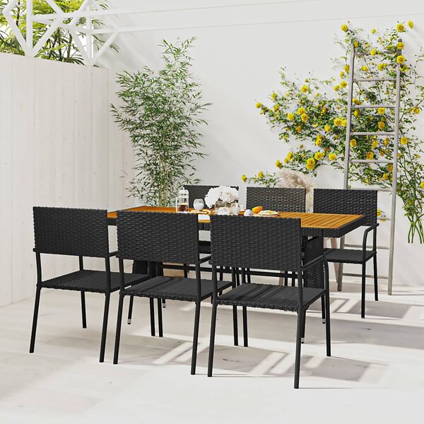 vidaXL Matgrupp för trädgården 7 delar konstrotting svart 3120106
