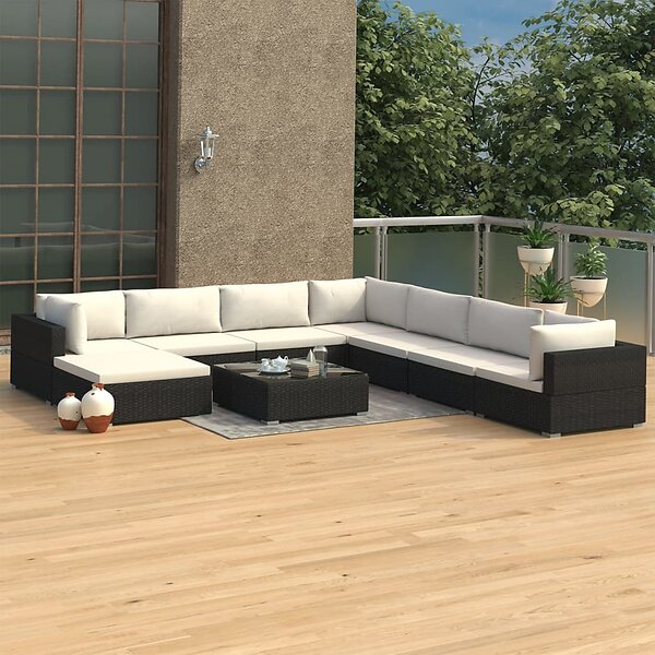 vidaXL Loungegrupp för trädgården med dynor 9 delar konstrotting svart 46774