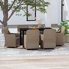 vidaXL Matgrupp för trädgården med dynor 7 delar brun 3099538