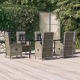 vidaXL Matgrupp för trädgården dynor 7 delar svart&grå konstrottning 3185203