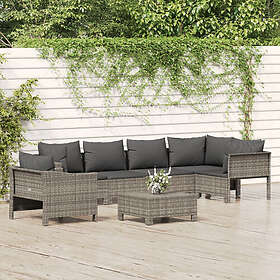 vidaXL Loungegrupp för trädgården med dynor 7 delar grå konstrotting 3187283