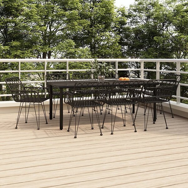 vidaXL Matgrupp för trädgården 9 delar svart konstrotting 3157872