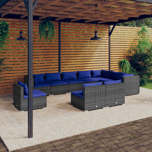 vidaXL Loungegrupp för trädgården med dynor 10 delar konstrotting grå 3102598