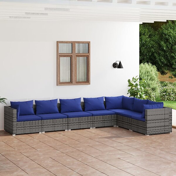 vidaXL Loungegrupp med dynor 7 delar grå konstrotting 3101742