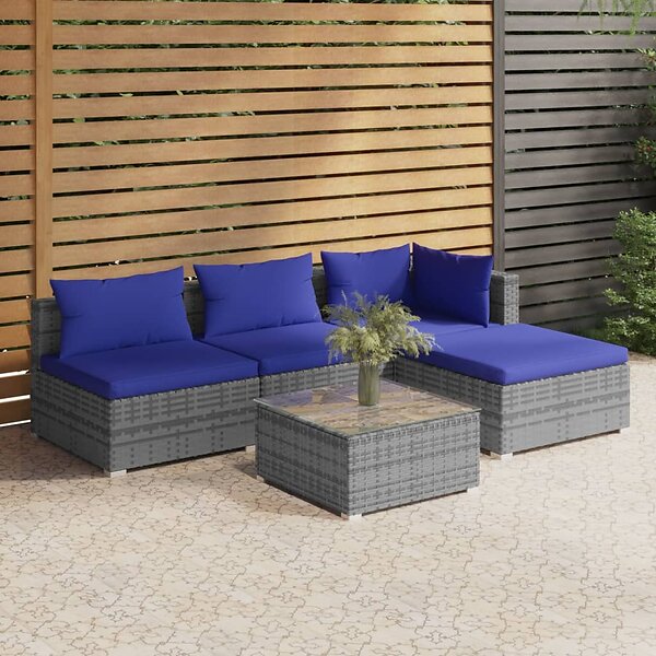 vidaXL Loungegrupp med dynor 5 delar konstrotting grå 3101622