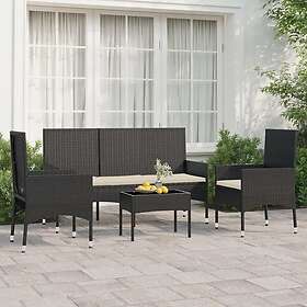 vidaXL Loungegrupp för trädgården med dynor 4 delar svart konstrotting 319500