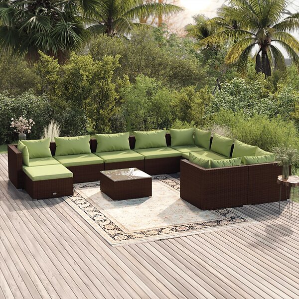 vidaXL Loungegrupp för trädgården med dynor 11 delar konstrotting brun 3102692