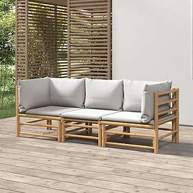 vidaXL Loungegrupp för trädgården 3 delar ljusgråa dynor bambu 3155087