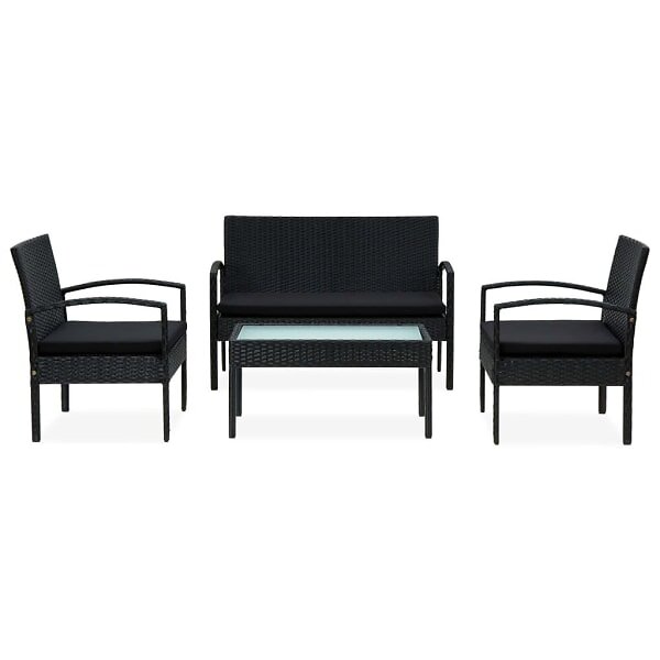 vidaXL Loungegrupp för trädgården med dynor 4 delar konstrotting svart 45788
