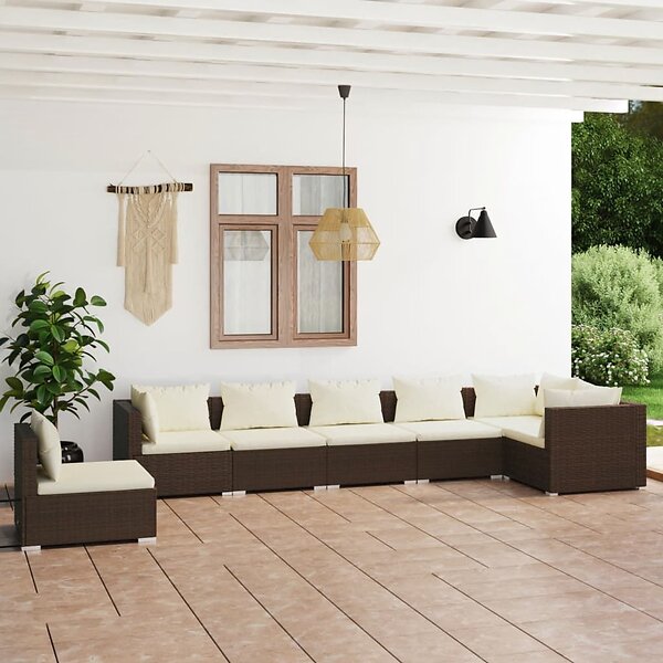 vidaXL Loungegrupp för trädgården med dynor 7 delar konstrotting brun 3102338