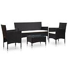 vidaXL Loungegrupp för trädgården med dynor 4 delar konstrotting svart 45889