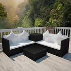 vidaXL Loungegrupp för trädgården med dynor 4 delar konstrotting svart 42893